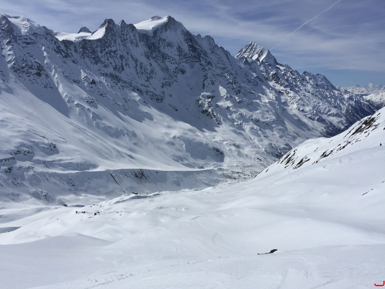 Mon choix se porte sur un itinéraire qui me emblait très sûre, les 100 derniers mètres mettront en doute cette confiance aveugle de les cartes norvégiennes. La neige est humidifiée en profondeur et c'est plus raide que sur la carte. Les petites avalanches récentes sont la pour le prouver.