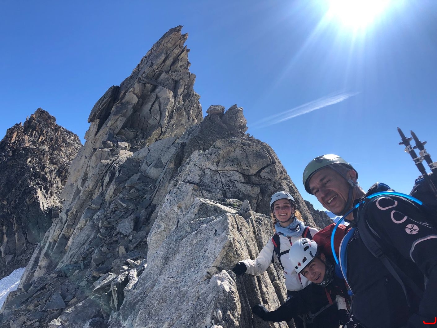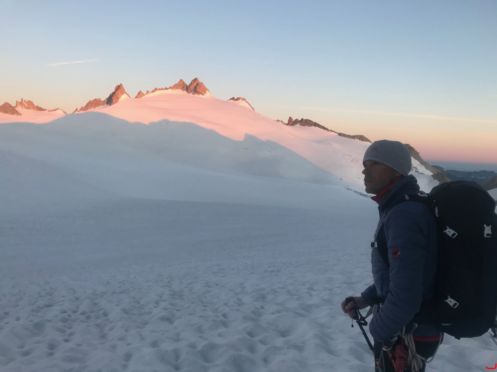 Troisième jour, traversée jusqu'à la cabane Trient en passant par le bivouac de l'Envers des Dorées. Ascension du Roc des Plines et un peu cascade de glace au passage.