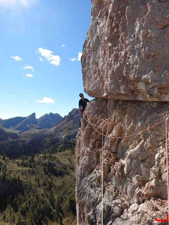 Dernier jour, une grande classique au Cinque Torri: Torre Grande - Cima Sud voie Diretta "Dimai". Superbe, mais on mentalement fatigué.