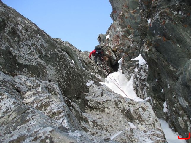 Puis direction Becca de Corbasière pour le superbe couloir équipé par Gérald Maret je crois. Soit 5 rappels de 15 mètres et 900 mètres de ski. Il vaut mieux prendre une corde de 60 ou une jumelée, histoire d'avancer un peu.