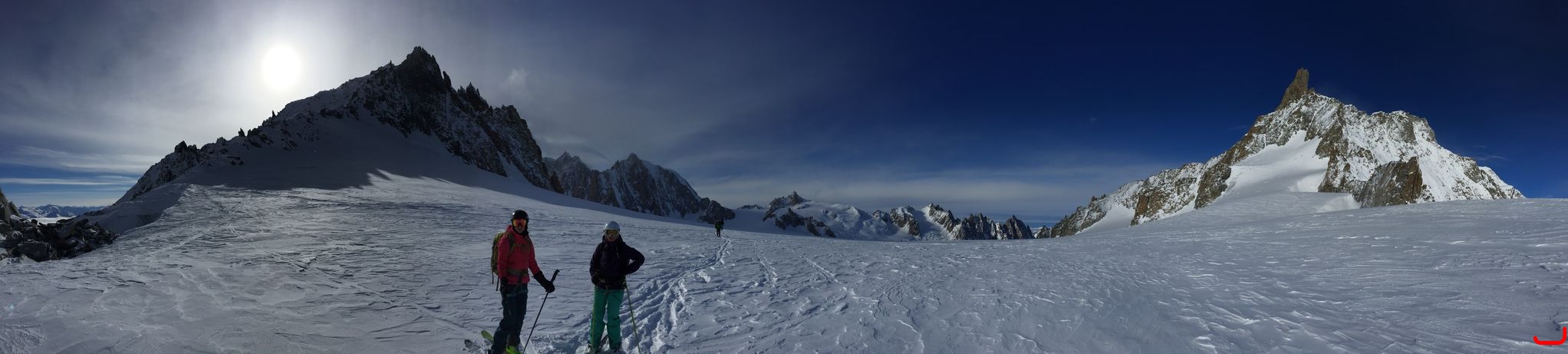 1000 mètres de bon ski un peu raide, avec la face sud du Mont-Blanc dès qu'on lève les yeux, top.